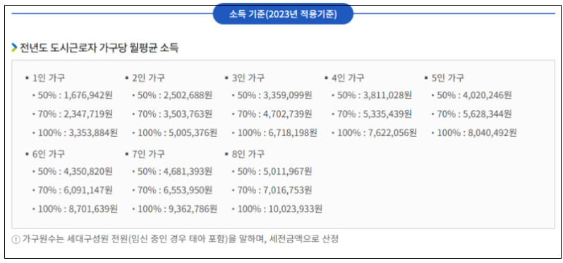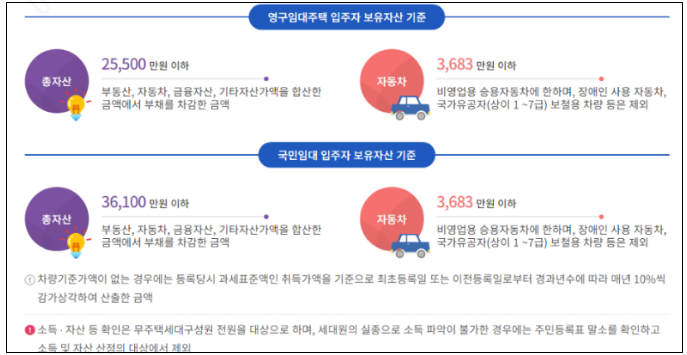 ◽ 2순위 : 본인과 부모 합산 월평균소득이 100% 이하이며, 국민임대주택 자산기준 충족하는 자